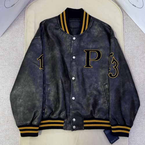 프라다 레더 봄버 자켓 패치장식